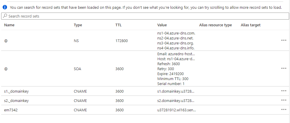 Once you’ve added all three CNAME records, your DNS zone should look like below.