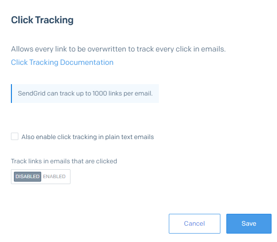 As I mentioned above, I recommend you disable open and link tracking on your SendGrid account. If you’re using a marketing tool other than SendGrid, then it will track these things for you.
