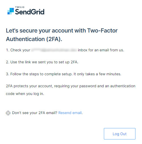 You’ll then be sent an email to configure MFA on your account. This isn’t optional on newly created Sendgrid accounts.